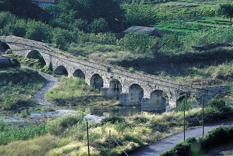 Tornando indietro, dalla stradina che ci riporta alla chiesa è ben visibile a valle il Ponte romanico (detto poi di S. Giovanni) su cui passava la via Julia Augusta diretta a Rollo.