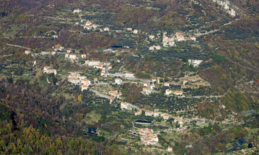 I suoi 250 abitanti vivono in 14 frazioni sparse fra castagneti, frutteti e fasce coltivate a orti, ogni tanto un campanile spunta sopra il verde, qua e là un gruppo di case in pietra abbandonate.