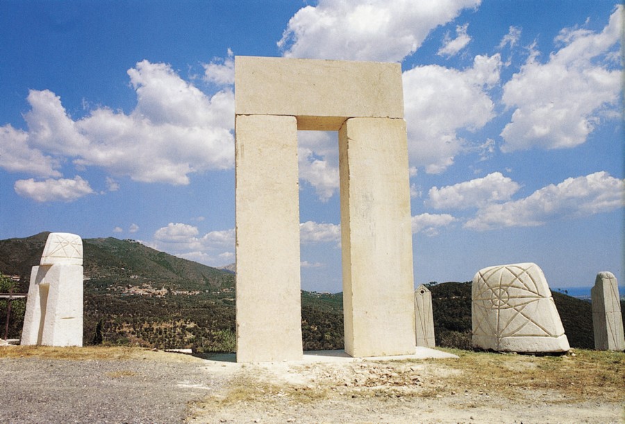 Proseguendo, al bivio prendiamo a sinistra per Arnasco e dopo pochi metri parcheggiamo sul ciglio della strada. Qui a destra abitava lo scultore berlinese Reiner Kriester che - inseguendo un suo personalissimo progetto di integrazione fra pietra, arte e natura - ha eretto in piena campagna una cinquantina di stele in pietra di Finale alte anche più di tre metri variamente scolpite.