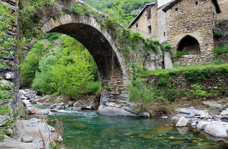 Se invece prendiamo a destra la rampa in cemento che sale, arriviamo ad un nucleo di case medievali da cui abbiamo una vista sulla vallata e sul ponte.