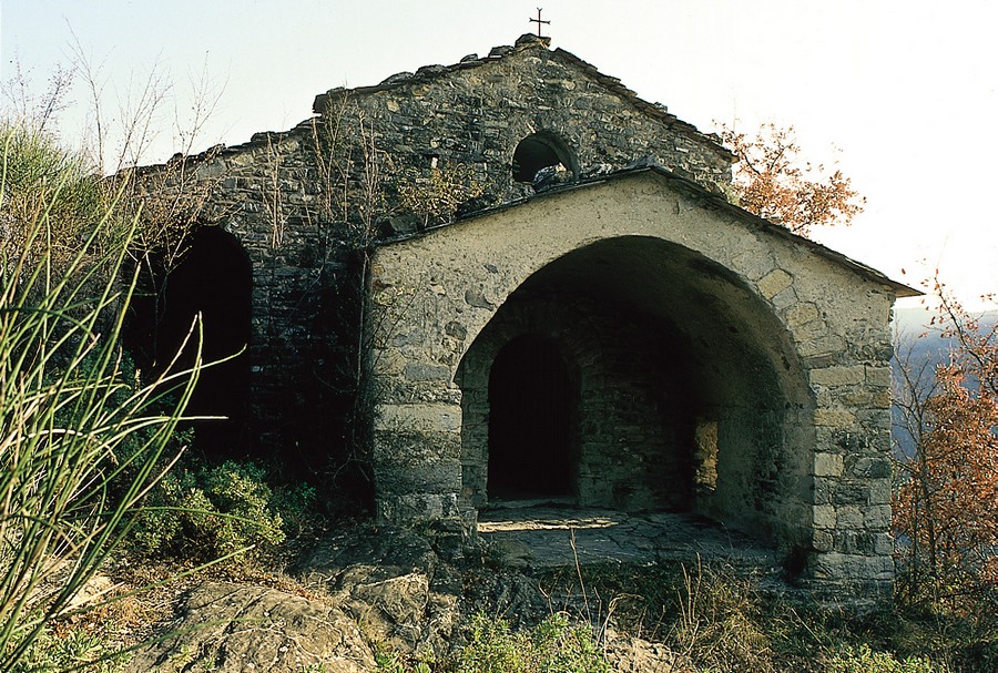 Tornando indietro passiamo a monte del villino e proseguiamo sul sentiero a sinistra che in poche centinaia di metri ci porta alla cappella benedettina di S. Mauro, con volta a botte coperta da "ciappe"; il robusto porticato ha tetto a capriate e sediletti in pietra che si ripetono all'interno decorato da semplici affreschi con motivo a croce, in via di deterioramento.