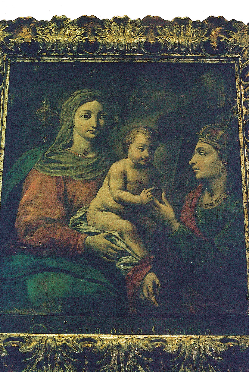 Accanto all'affresco della Vergine è appeso il quadro originale della Madonna della Chiazza già al santuario omonimo.