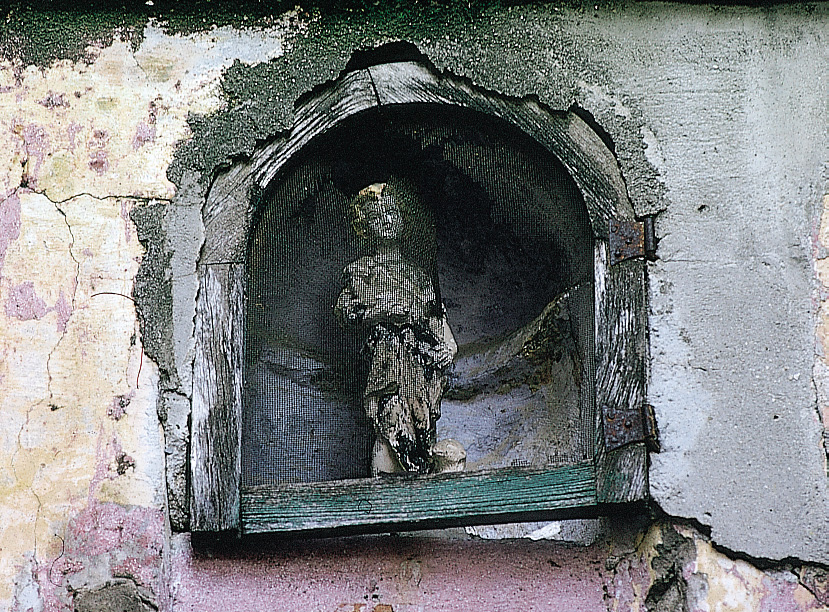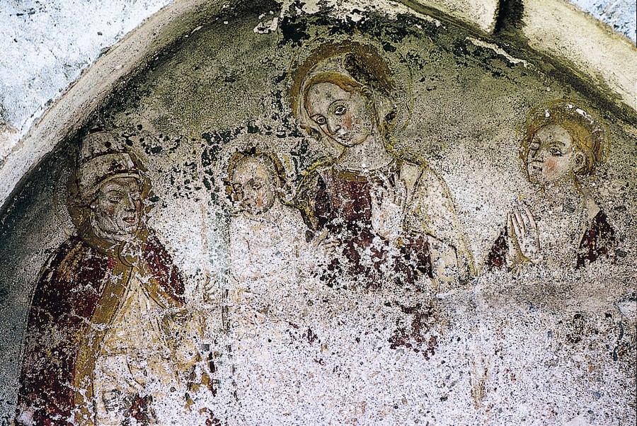 Avviandoci alla sua destra incontriamo i ruderi di una casa medievale in abbandono su cui appoggia il sovrastante abbeveratoio in pietra; proseguendo sulla sinistra aggiriamo l'abside finché arriviamo ai piedi della scaletta che la risale; chi vuole può andar su a sbirciare dai buchi della porta lo spoglio interno della costruzione.