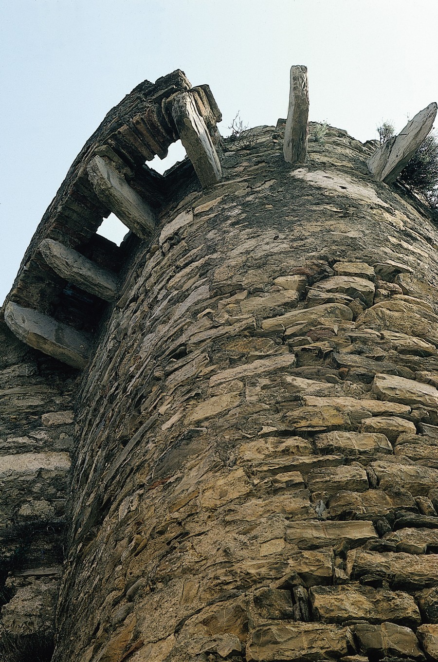 Oltrepassato a sinistra lo slargo con affresco dedicato alla Vergine prendiamo poco più avanti a sinistra la Salita alla Chiesa che ci porta al più antico nucleo fortificato del borgo: delle originarie strutture difensive è rimasta qui a destra la torre con le intatte caditoie che possiamo osservare da vicino una volta arrivati sul sagrato.