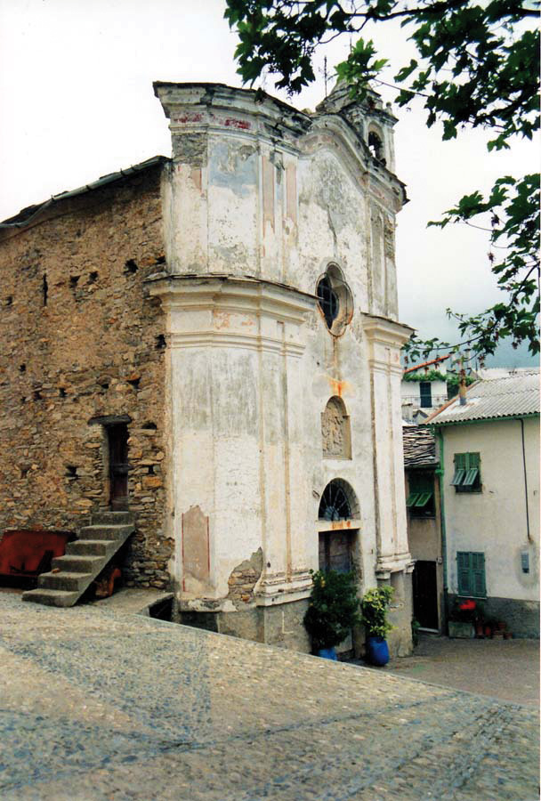 Arrivati al paese parcheggiamo sullo slargo a destra dove, all'angolo del piccolo palazzo municipale, è riportata la pianta del borgo e, salita la scala a sinistra, raggiungiamo lo spiazzo su cui fronteggiato dalla parrocchiale sorge il barocco oratorio dell'Annunziata: la facciata è arricchita da una lapide intagliata con una "Annunciazione" ed anche la monofora del campanile è decorata con una pietra intagliata.