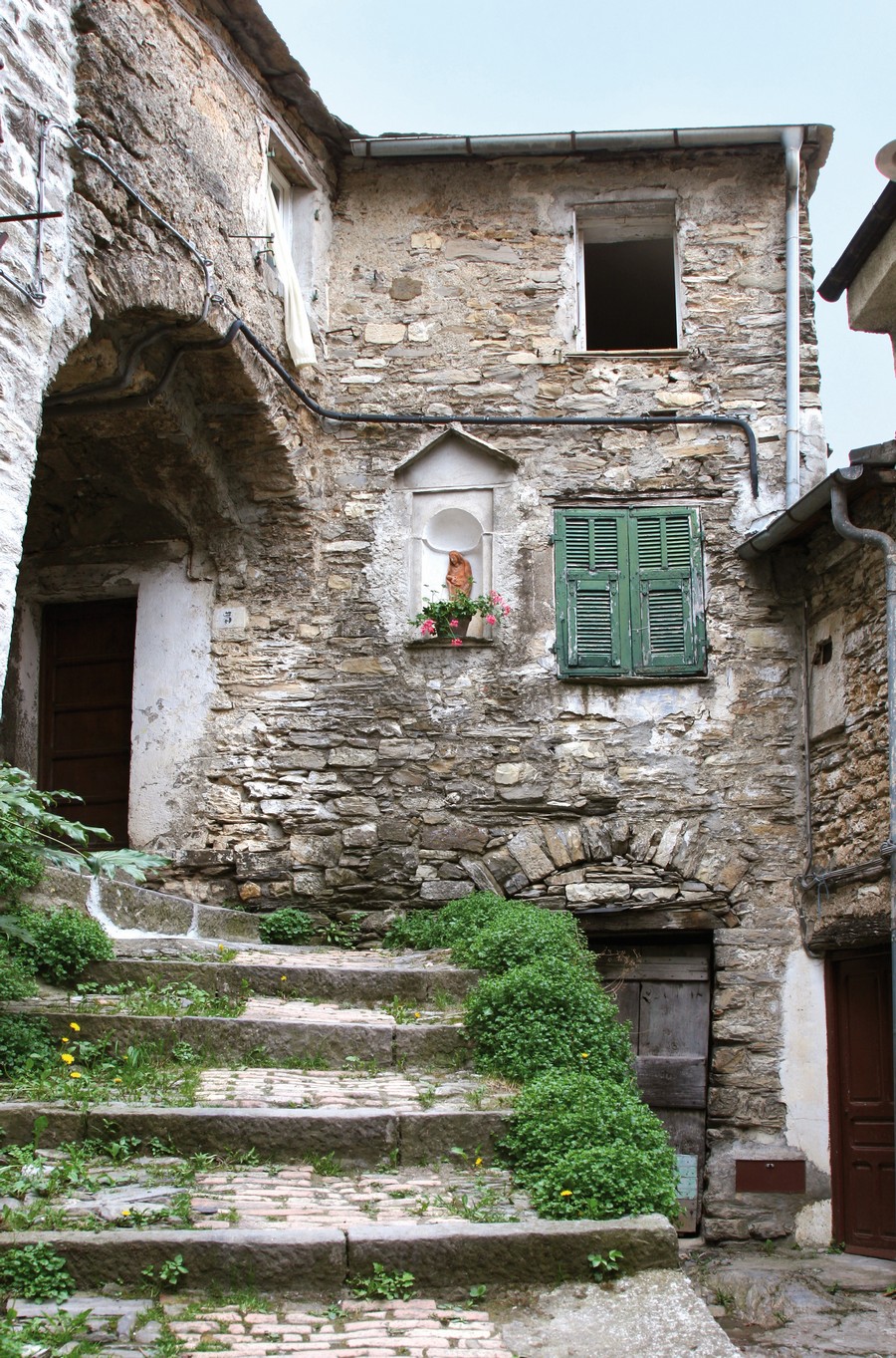 Salendo invece per via Costa vediamo a sinistra l'uso delle "ciappe" forate a reggere i pali di un giardino, e nella casa successiva una meridiana; proseguendo troviamo la cappella ormai abbandonata che conclude l'abitato.