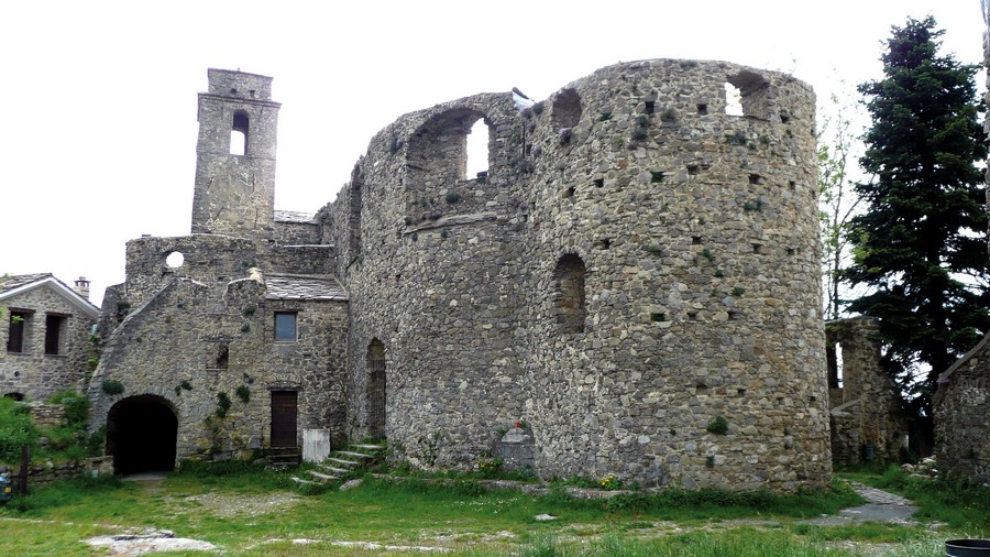 Alla parte più antica del borgo accediamo tenendoci a sinistra ed imboccando poi allo slargo la rampa che sale a destra sotto il volto; proseguendo lungo il vicoletto che passa sotto i volti delle case dalla tipica struttura montana arriviamo al bivio con a sinistra un portale in pietra ad arco ogivale, da cui salendo sulla destra raggiungiamo la parte più elevata del paese.