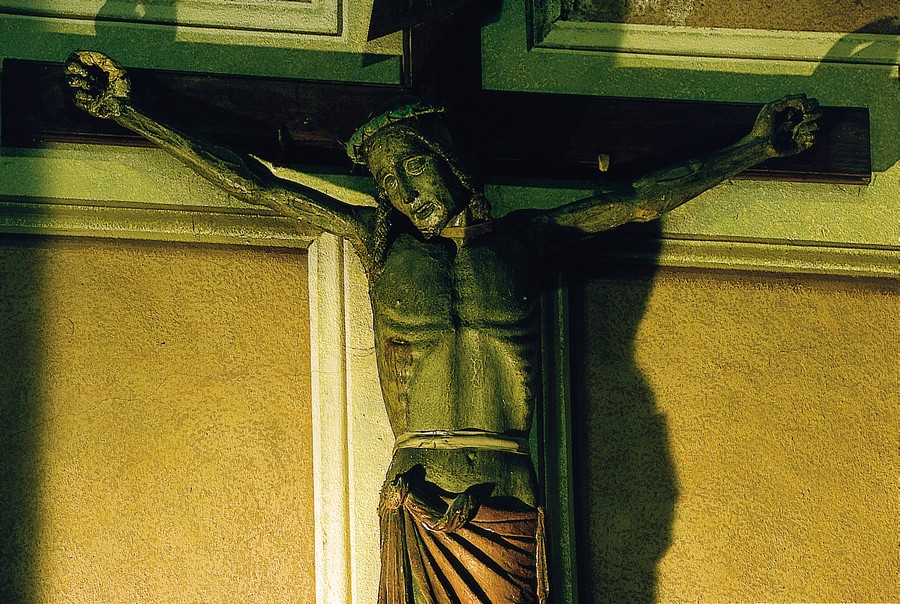 Nell'ultimo altare a sinistra è conservato un Crocifisso medievale particolarmente suggestivo, e nell'altare del lato opposto la seicentesca tela del "Santo Suffragio" donata dall'astronomo Cassini; l'abside è singolarmente spoglia.
