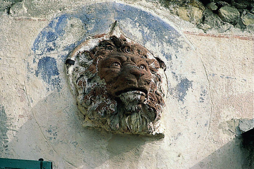Parcheggiata l'auto, scendiamo allo slargo sotto la strada e raggiungiamo il barocco oratorio dell'Annunziata proseguendo oltre il sagrato fino all'incrocio da cui andiamo a destra sotto il volto con edicola. Superate diverse case arcaiche in pietra, prendiamo poi a sinistra la via con pavimento in mattoni al centro; allo slargo c'è, murata nella parete a sinistra, una testa di leone in terracotta.