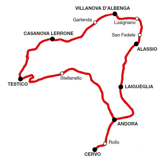Cervo - Andora - Stellanello - Testico - Casanova Lerrone - Garlenda - Villanova d'Albenga - Lusignano - San Fedele - Alassio - Laigueglia  - Rollo