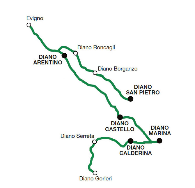Diano Marina - Diano Castello - Diano Borello - Diano Arentino - Evigno - Diano Roncagli - Diano Borganzo - Diano San Pietro - Diano Calderina - Diano Serreta - Diano Gorleri