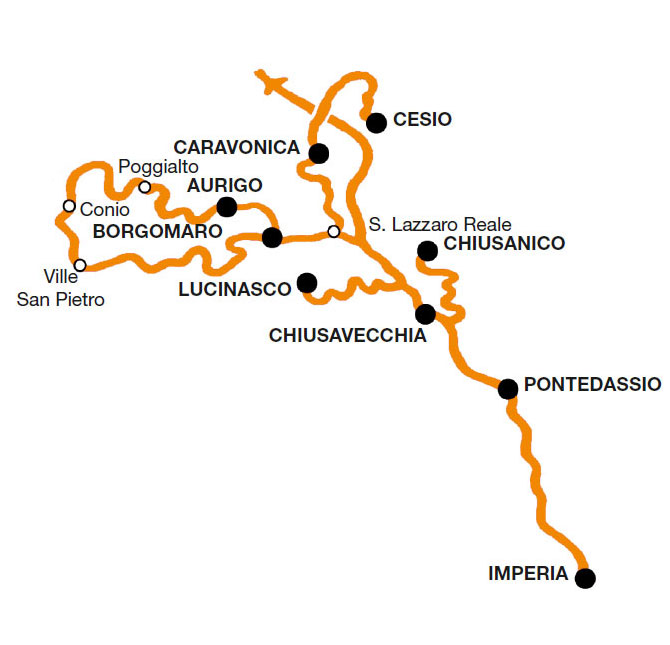 Imperia Oneglia - Pontedassio - Chiusanico - Chiusavecchia - Lucinasco - Borgomaro - Aurigo - Caravonica - Cesio